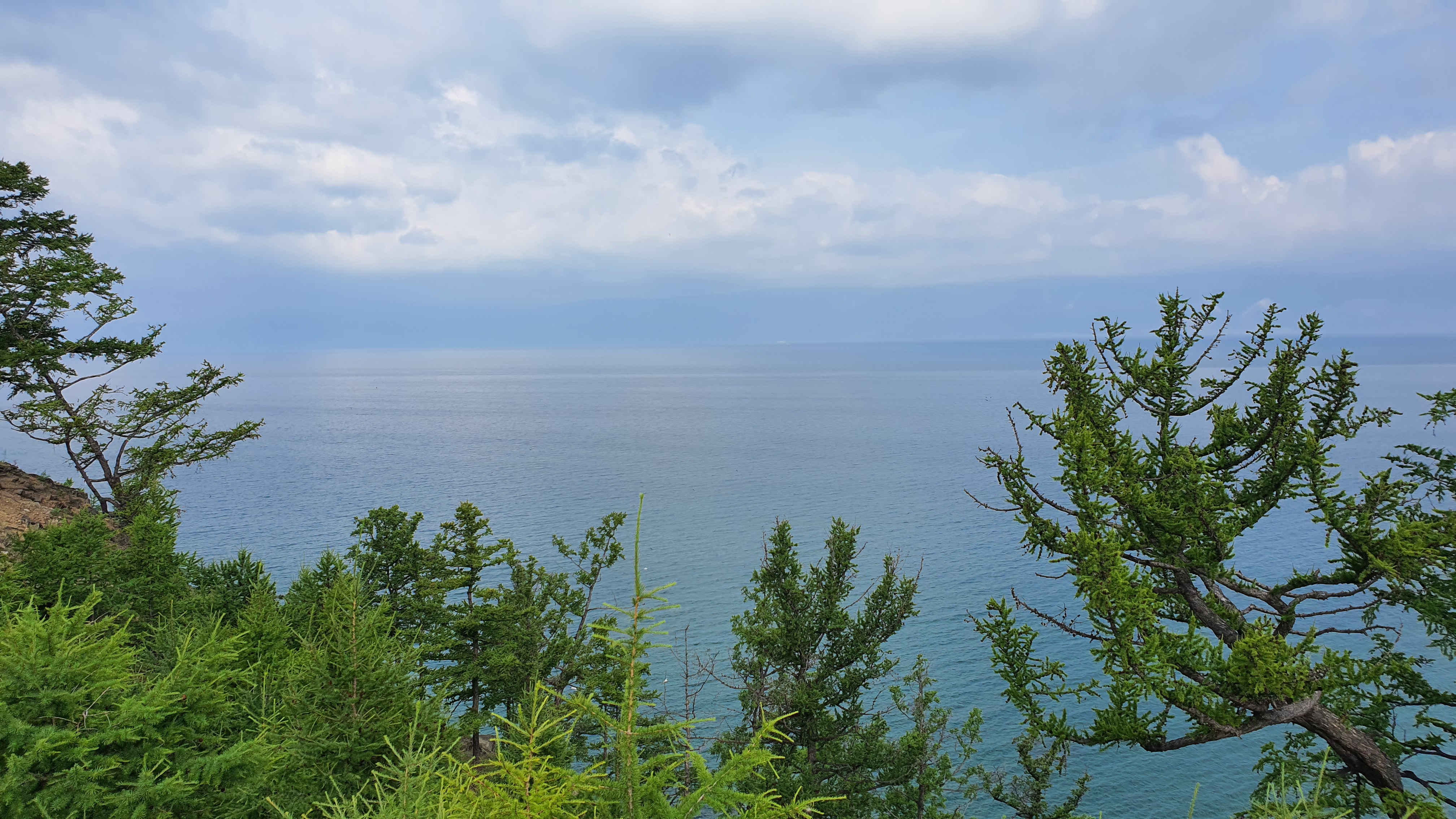 후르지마을 언덕에서 바라본 바이칼 호수는 앞은 산과 하늘이 맞닿아 있습니다.