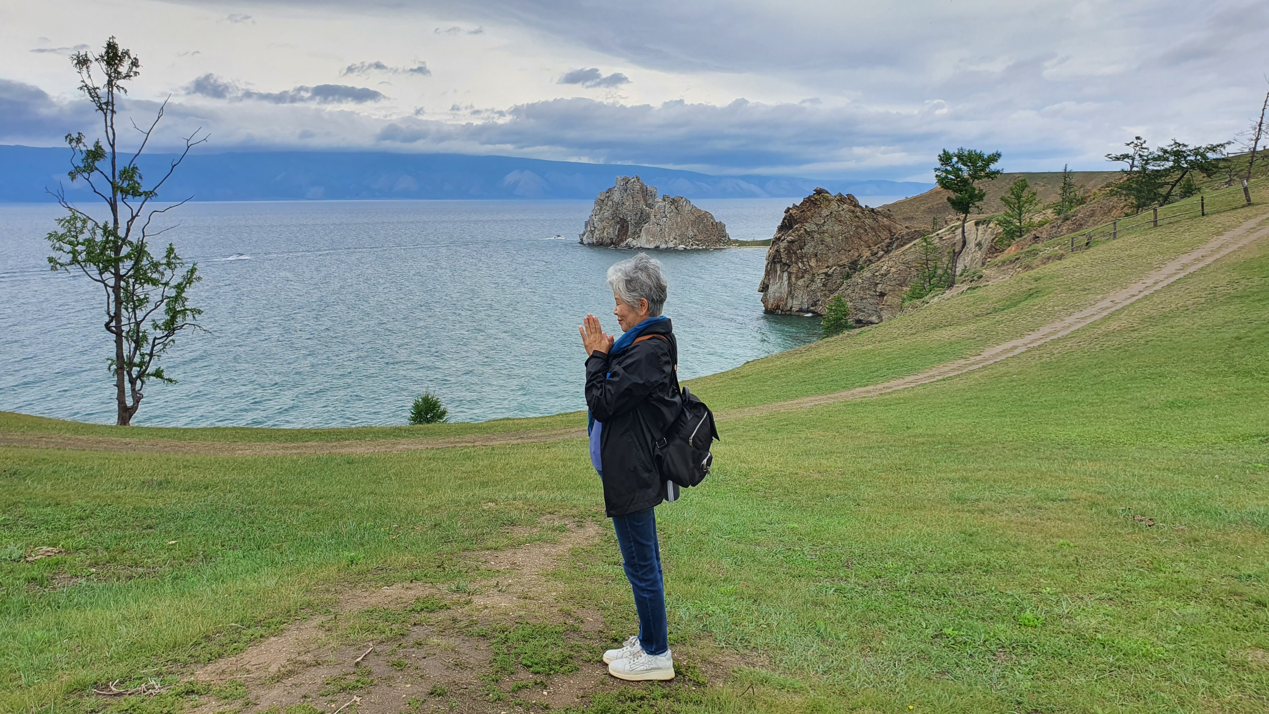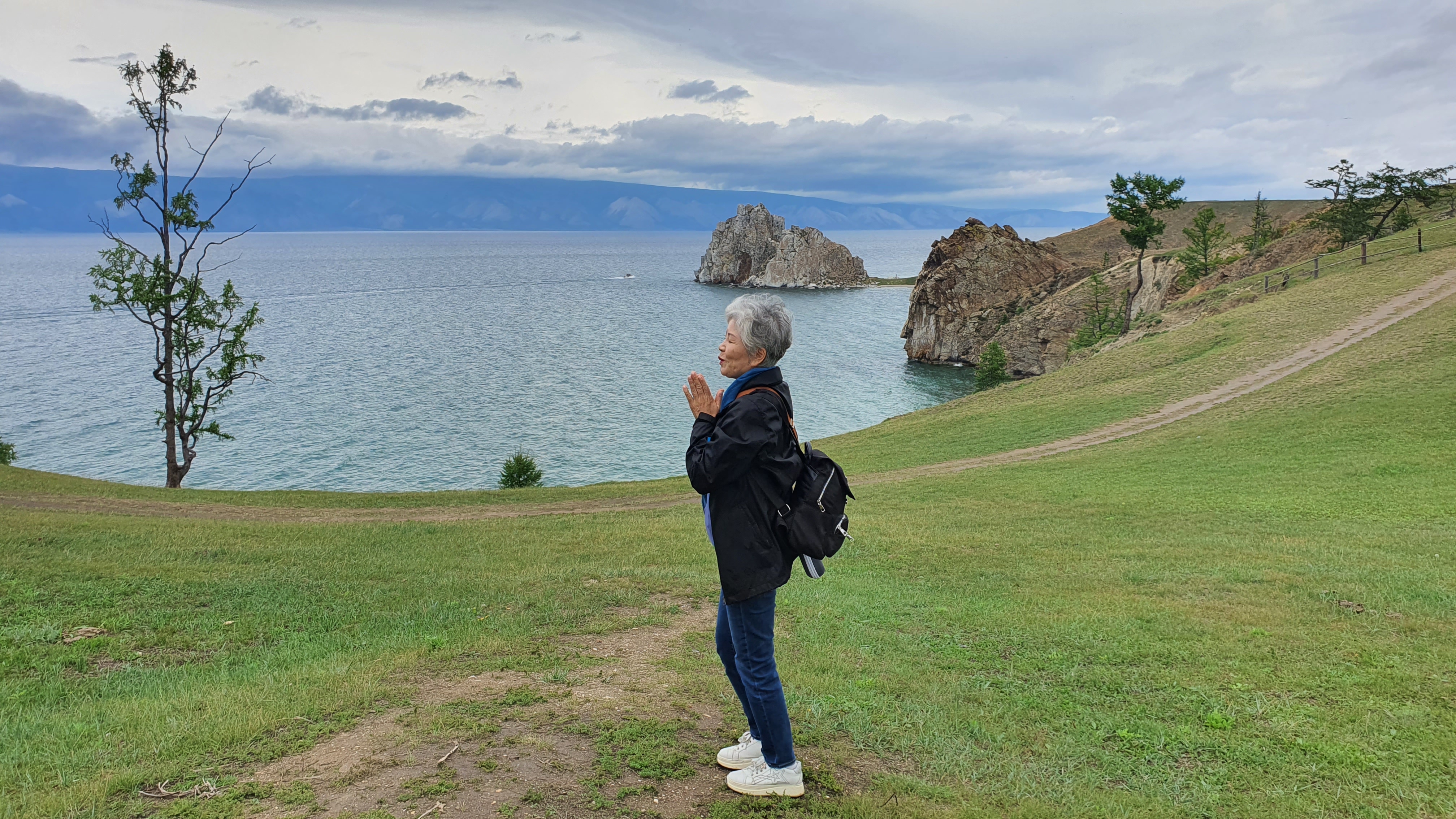 앞에 보이는 바위가 바이칼호수의 시원인 부르한바위입니다.
